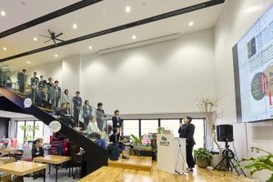 名古屋大学総長の杉山直先生よりお一人ずつ採用証を受け取りしました。